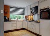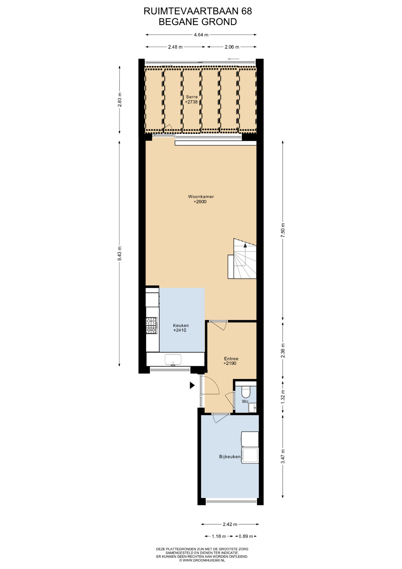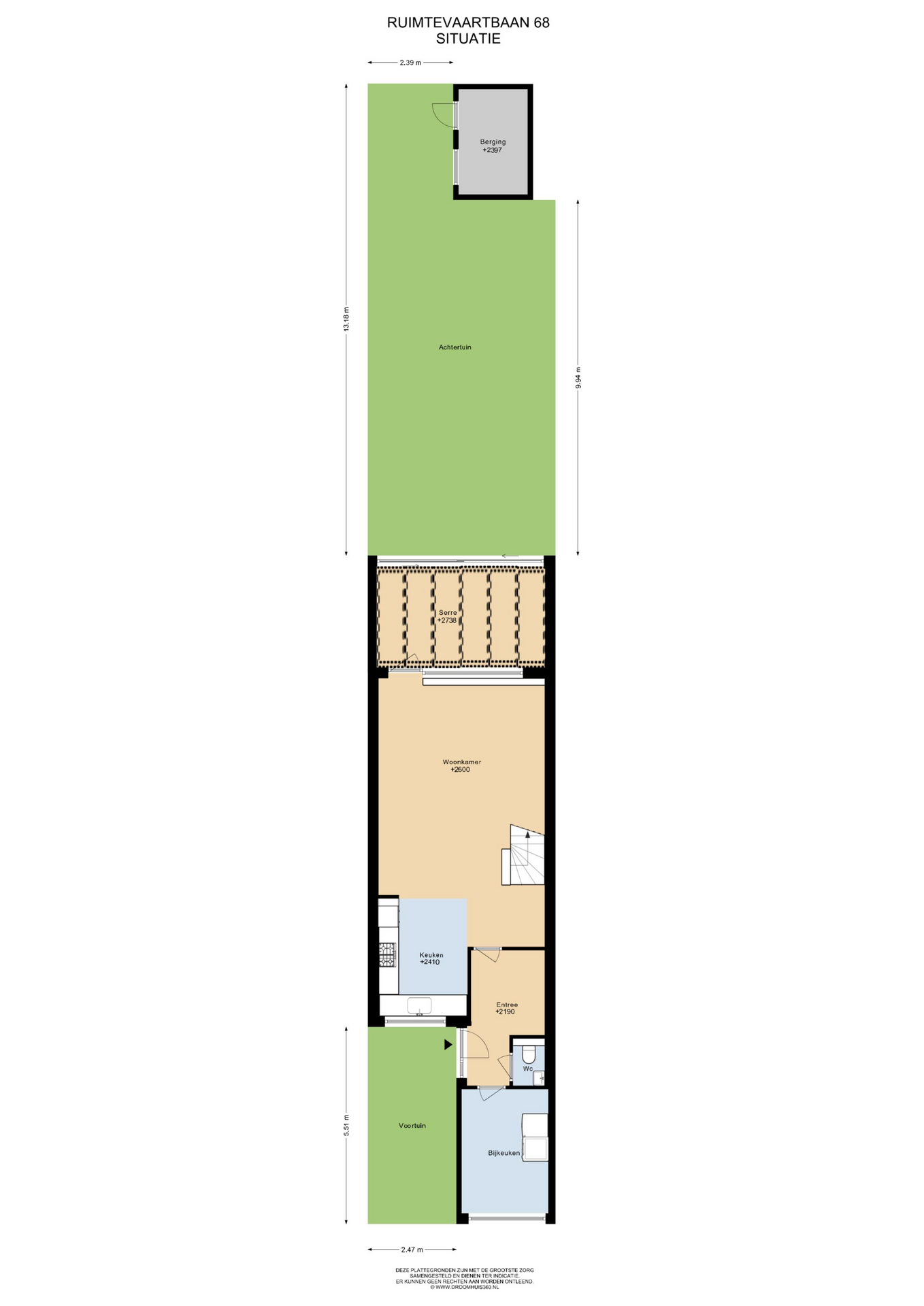Begane grond: entree/hal met modern toilet en toegang tot de (voormalig)berging thans in gebruik als wasruimte en bijkeuken. De woonkamer bevindt zich aan de achterzijde en geeft een deur toegang tot de fraaie serre. De eveneens ruime keuken is aan de voorzijde gelegen en voorzien van een keukeninrichting in hoekopstelling uitgerust met inbouwapparatuur. De luxe pvc vloer maakt het plaatje compleet.