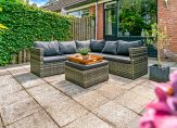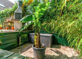 De achtertuin is op het westen gesitueerd en heeft een extra terras aan water en groen. Parkeren op eigen terrein is in de voortuin mogelijk. Hier bevindt zich tevens een stenen berging.