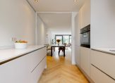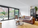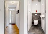 Begane grond: ruime entree/hal met toegang tot de berging waardoor deze ook te gebruiken is voor andere doeleinden, meterkast en modern toilet. De grote tuingerichte woonkamer is met 2,5 meter uitgebouwd en zorgt de grote glaswand met schuifpui voor een uitstekende lichtinval. De ruime half open keuken bevindt zich aan de voorzijde en is uitgerust met een moderne keukeninrichting in U-opstelling voorzien van inductiekookplaat, luxe combi oven, vaatwasser, koelkast, afzuigkap en quooker. De gehele begane grond is afgewerkt met een (visgraat) Pvc vloer en vloerverwarming.
