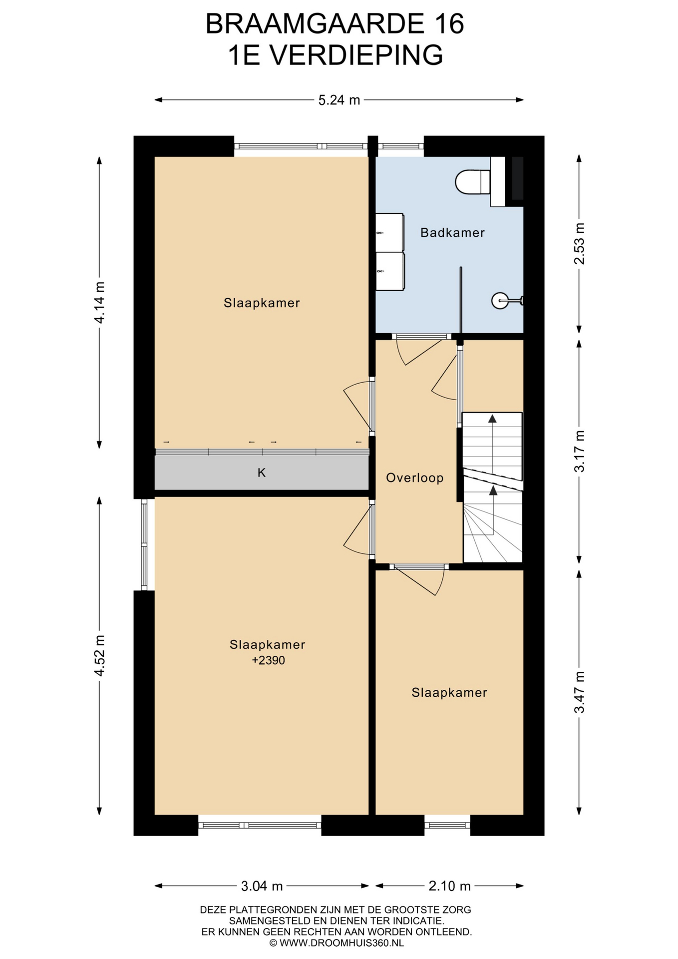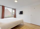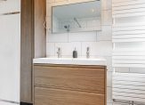 1e verdieping: Overloop naar 3-tal ruime slaapkamers waarvan 1 slaapkamer met kastenwand. Moderne badkamer met luxe wastafelmeubel, inloopdouche en 2e toilet. Overloop en slaapkamers met laminaatvloeren.