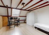 2e verdieping: Een vaste trap geeft toegang tot de grote open zolderkamer met meerdere dakramen (kunststof) waar eenvoudig een extra kamer gerealiseerd kan worden. Praktische bergruimte waar eveneens de c.v.-ketel (2022) is geplaatst en is er een bergvliering.