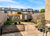 Ruime en zonnig gelegen tuin met vrijstaande stenen berging en achterom. De tuin is gelegen op het zonnige zuiden.