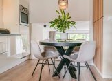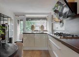 Enkele treden hoger ligt de moderne open inbouwkeuken aan de voorzijde. De keuken is uitgerust met diverse inbouwapparatuur. Naast de keuken heeft u ook een praktische bijkeuken. Tevens treft u hier een gezellig balkon.