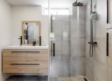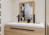Overloop, welke toegang geeft tot de moderne badkamer, voorzien van een vaste en dubbele wastafel met meubel, toilet en een riante inloopdouche. De verdieping heeft de beschikking over een 2-tal riante slaapkamers. Op de verdieping ligt een laminaatvloer.
