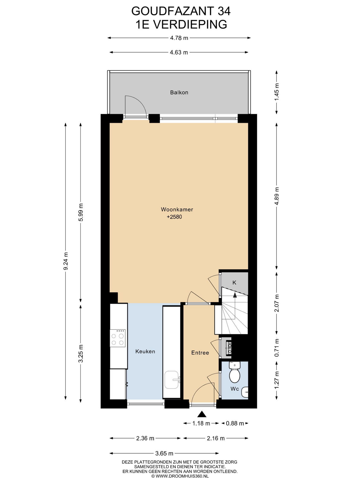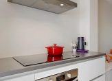 Entree hal, met een toilet, meterkast en de trap naar boven. Via de hal kom je de woonkamer binnen, welke ruim en licht is en voorzien van een mooie laminaatvloer. Aan de voorzijde van het appartement treft je de moderne keuken aan. De keuken is neutraal van opzet en luxe uitgevoerd en uiteraard voorzien van diverse inbouwapparatuur.