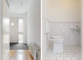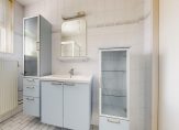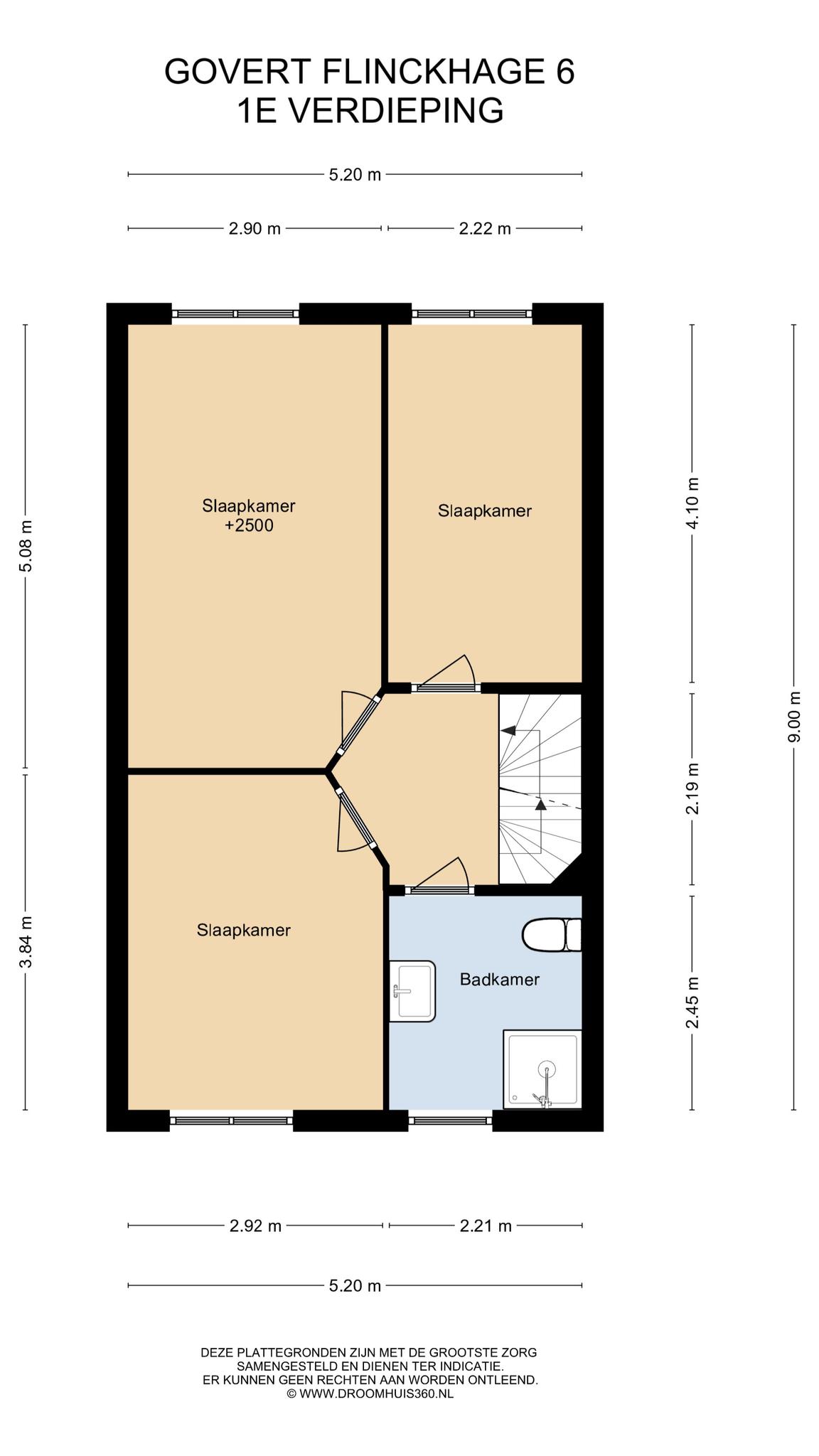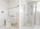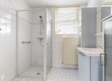 1e verdieping: overloop met toegang tot 3 ruim bemeten slaapkamers en badkamer met wastafel in meubel, douchecabine en 2e toilet en aansluiting voor wasmachine.