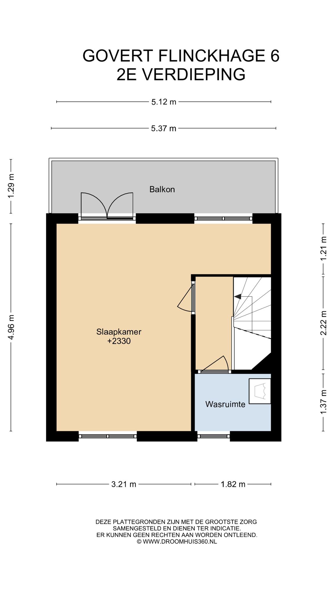 2e verdieping: voorzolder met toegang tot waskamer en grote kamer met openslaande deuren naar het dakterras.