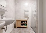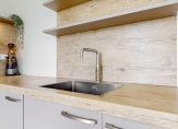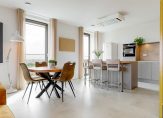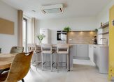 De liftinstallaties vanuit de centrale hal geven toegang tot de woning. De lange hal zorgt voor de entree naar de grote woonkamer met meerdere raampartijen en schuifpui naar het fantastische terras. De open keuken is uitgerust met een moderne keukeninrichting in hoekopstelling en kookeiland. De apparatuur bestaat uit een inductie kookplaat, afzuigkap, combi quooker (warm en koud water), alsmede magnetron/oven. In de hal bevindt zicht het toilet, de wasruimte en zijn de 2 ruim bemeten slaapkamers bereikbaar alsmede de badkamer met dubbele wastafel en inloopdouche. Geheel voorzien van pvc vloeren met vloerverwarming.
