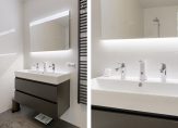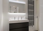Entree, hal, modern toilet, moderne en luxe badkamer met douche, 2de toilet en vaste wastafel met meubel. Aan de hal is een inpandige berging met o.a. de wasmachine-aansluiting gesitueerd.