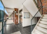 Centrale entree met bellentableau, trapopgang en ingang naar de lift. De bergingen zijn op de begane grond.
