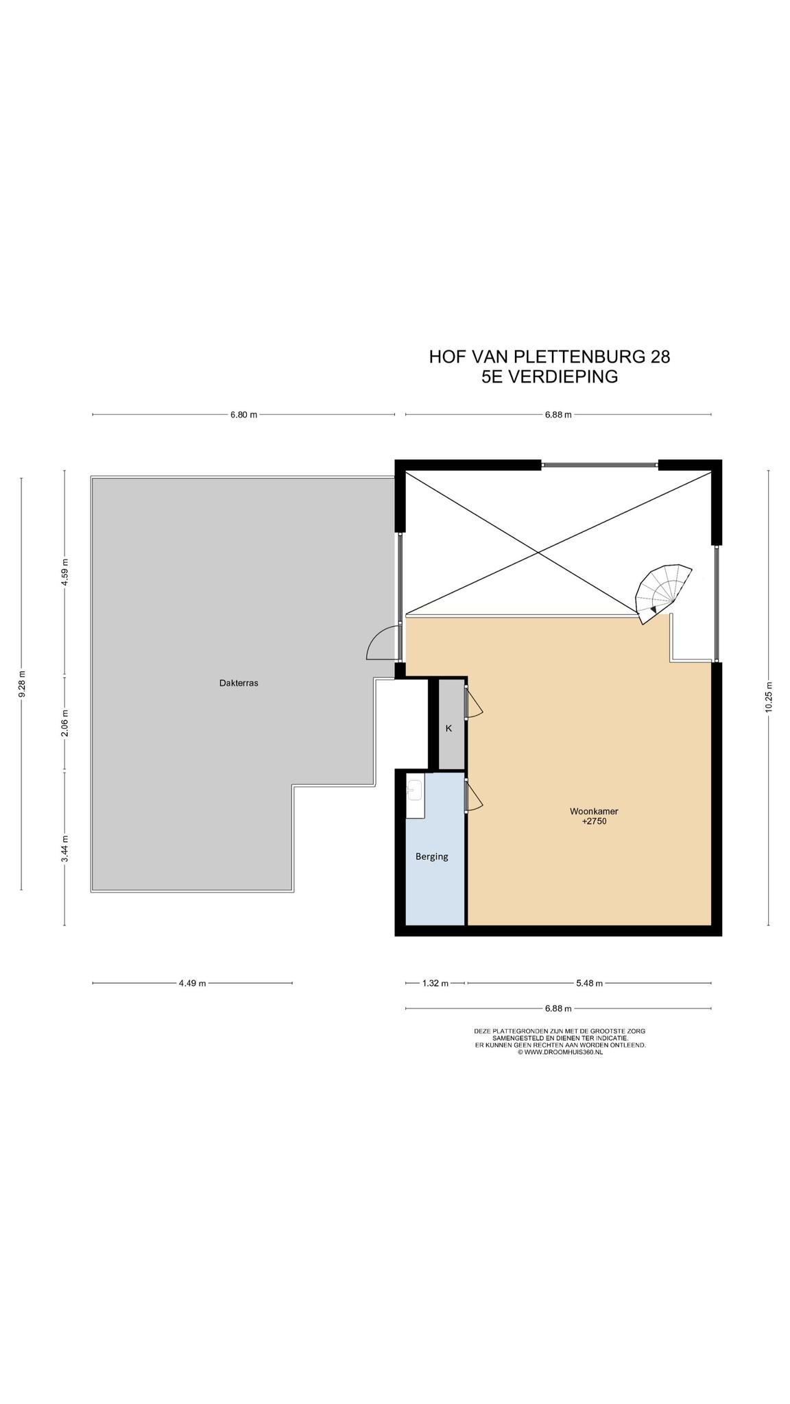 Vanuit de woonkamer is via een wenteltrap de tweede woonlaag te bereiken.