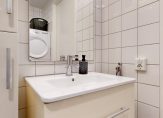 De slaapkamer is riant en is voorzien van een groot raam, wat zorgt voor fijn lichtinval. De neutrale en moderne badkamer is voorzien van een douchecabine, vaste wastafel, aansluiting voor wasmachine -/ droger en een hangend toilet.