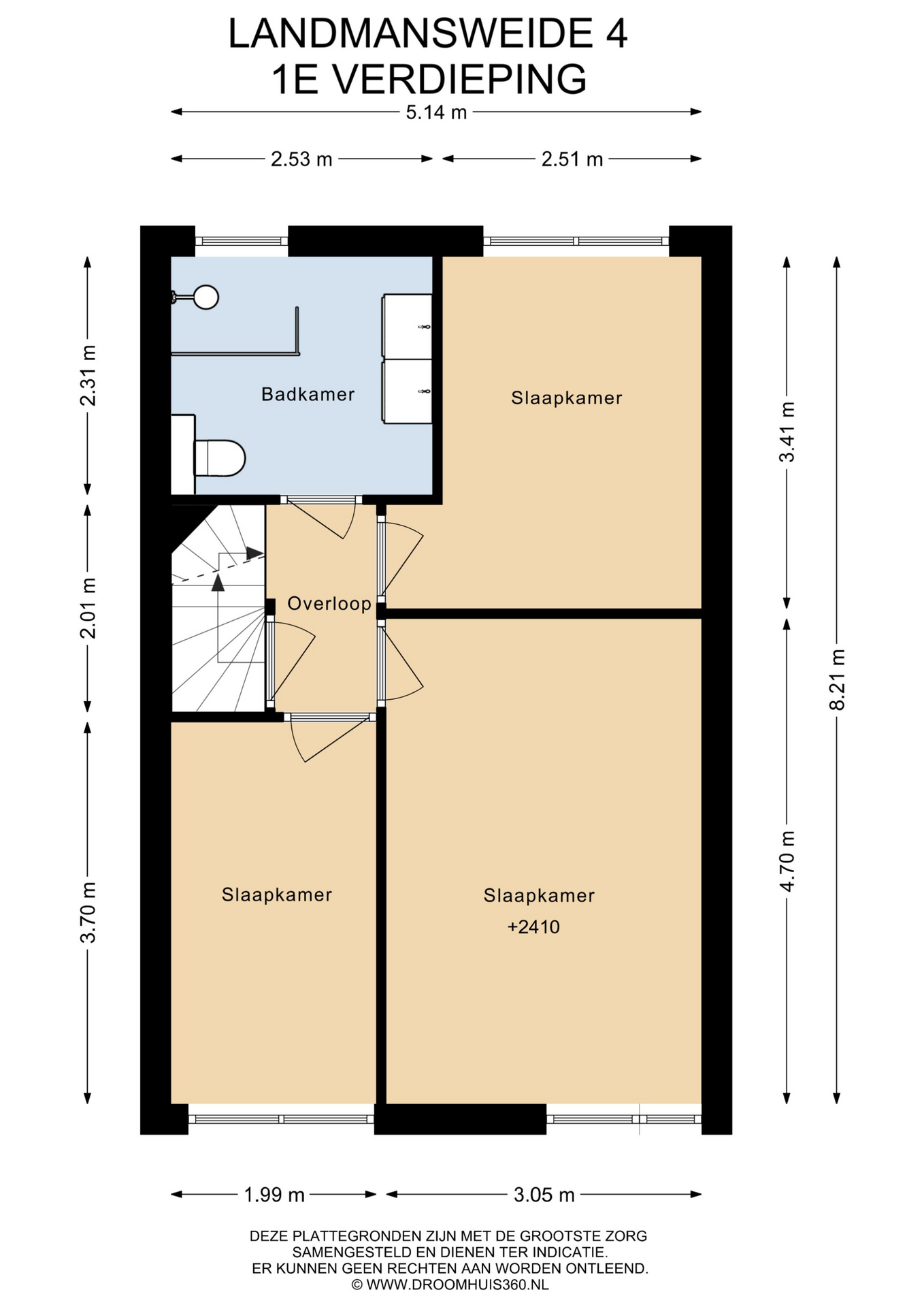 1e verdieping: overloop naar 3-tal goede slaapkamers en de badkamer. De badkamer is modern uitgevoerd en is ingedeeld met een dubbele wastafel in meubel, inloopdouche en 2e toilet.