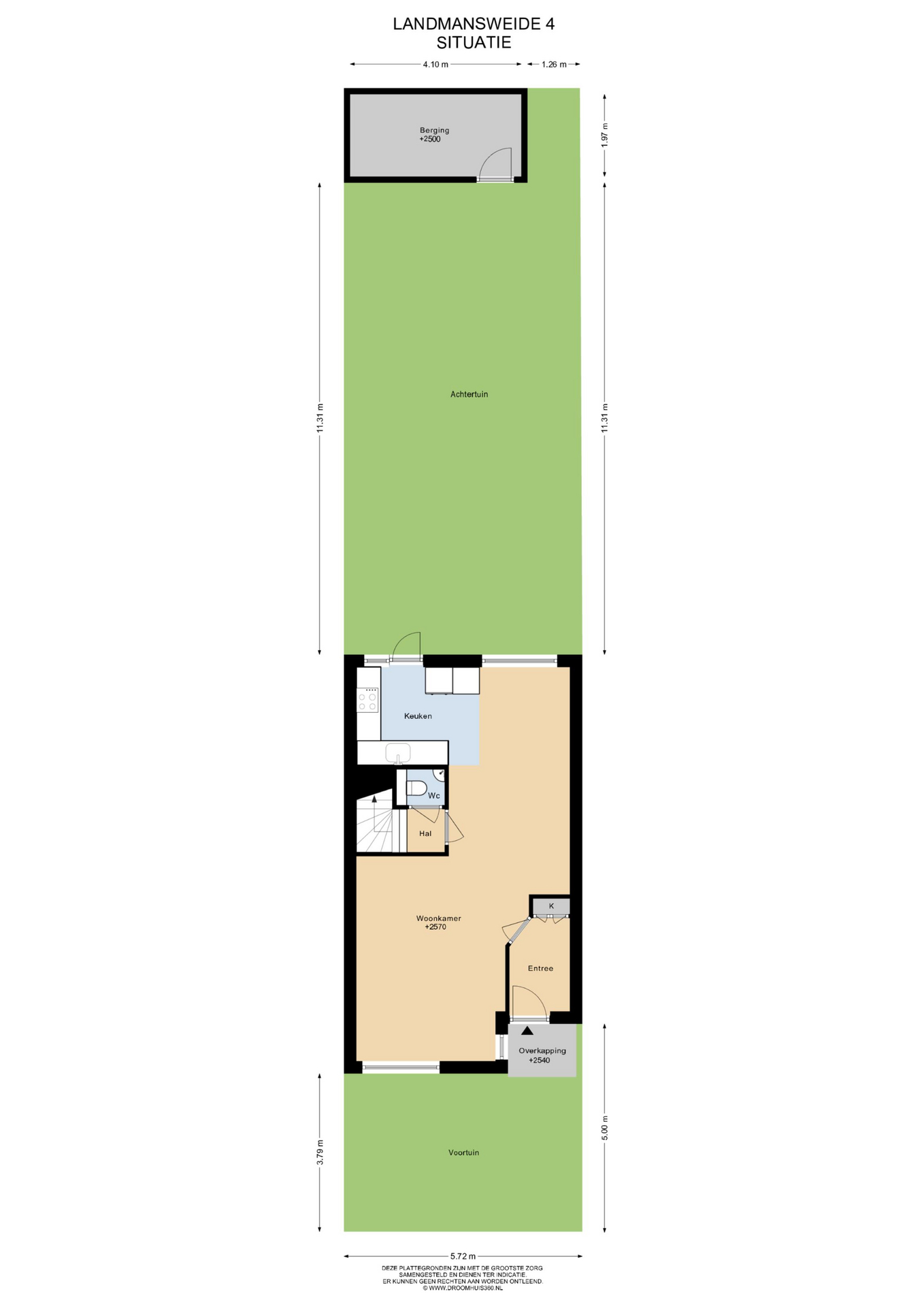 Het woonoppervlak bedraagt ca. 114m2 en is de woning gelegen op een perceel van 142m2. De fraai aangelegde achtertuin is ca. 11 meter diep en gelegen op het zuid/oosten. Hier bevindt zich de stenen berging en is er een achterom.