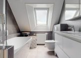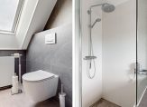 – Moderne badkamer voorzien van ligbad, douche, toilet en dubbele wastafel.