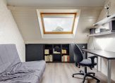 Op de eerste verdieping vind je drie comfortabele slaapkamers. Veder is er een luxe badkamer die beschikt over een bad, douche, toilet en dubbele wastafel. De tweede verdieping biedt nog eens twee extra slaapkamers. Eveneens is er veel bergruimte te vinden in deze woning.