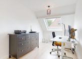 Nog een verdieping hoger, op de tweede verdieping, tref je nog een slaapkamer. Het hele huis profiteert van veel natuurlijk licht en luxe afwerkingen.