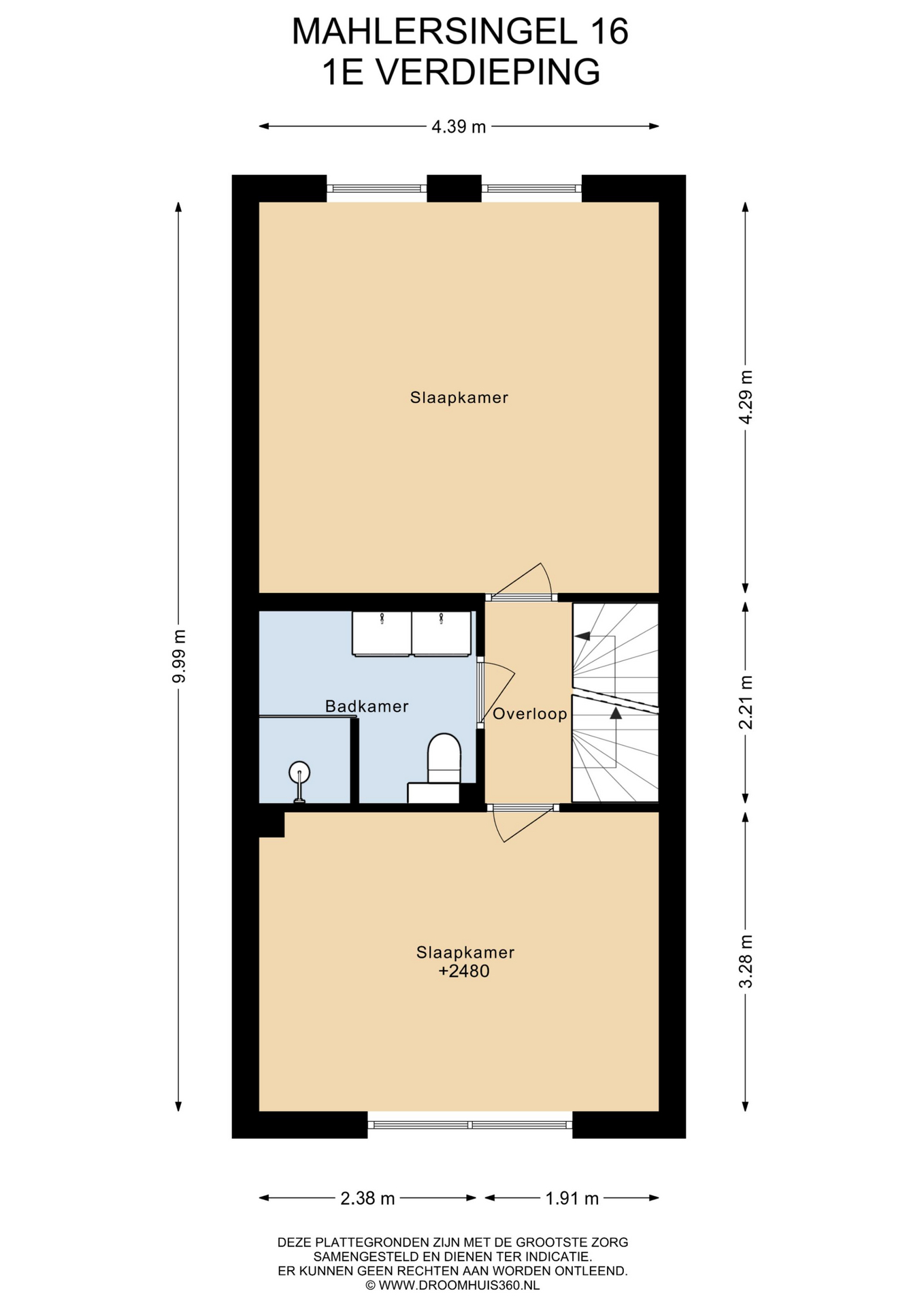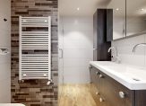 Overloop met toegang tot de 2-tal ruime slaapkamers (voorheen 3 slaapkamers) en moderne badkamer. De slaapkamers zijn ruim bemeten en praktisch te gebruiken. Moderne badkamer welke geheel is betegeld en voorzien van dubbele vaste wastafel met meubel, toilet en inloopdouche met hemeldouche en glazen deur. De verdiepingsvloeren zijn voorzien van laminaat.