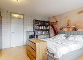 De tweede verdieping is in 2023 uitgebouwd en voorzien van nieuwe houten kozijnen. De ruime overloop biedt toegang tot een royale slaapkamer en het dakterras. Daarnaast is er volop bergruimte aanwezig, evenals voldoende plaats voor bijvoorbeeld een werkplek en wasvoorzieningen.