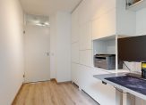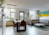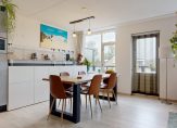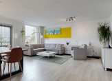 Riante en lichte woonkamer welke toegang biedt tot het zonnige terras op het westen. Vanaf het balkon heeft u naast veel zonlicht ook een vrije wegkijk. De moderne open keuken is voorzien van diverse inbouwapparatuur, te weten: een inductiekookplaat, afzuigkap, vaatwasser, combimagnetron en een koel,- vriescombinatie. Het werkblad is uitgevoerd in steen.