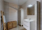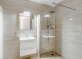 Indeling woning: ruime hal met meterkast, modern toilet, ruime badkamer voorzien van inloopdouche en wastafelmeubel, praktische inpandige berging en 2 grote slaapkamers. De hal geeft tevens toegang tot de woonkamer met openslaande deuren naar het ruime terras, aansluitend de half open keuken welke is voorzien van een moderne keukeninrichting in hoekopstelling en uitgerust met inbouwapparatuur. De gehele woning is voorzien van een laminaatvloer met vloerverwarming.