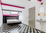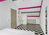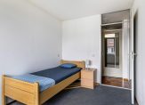 De ruime vierde slaapkamer (ca. 15 m²) bevindt zich aan de voorzijde van de woning en is voorzien van wastafel en een dakraam. Verder beschikt de kamer over veel bergruimte achter de knieschotten en vind je hier de unit voor de mechanische ventilatie.