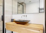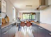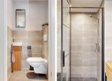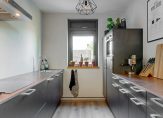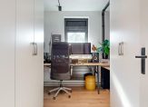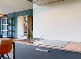Aan de voorzijde van de woning bevindt zich de halfopen keuken in een moderne parallel opstelling. Deze is voorzien van diverse inbouwapparatuur en biedt volop werk- en kastruimte voor de kookliefhebber. Via de hal bereik je tevens een handige voorraadkast en de strak afgewerkte badkamer, die is uitgerust met een inloopdouche en een luxe wastafelmeubel. Het separate toilet is eveneens modern uitgevoerd en beschikt over een fonteintje.