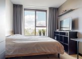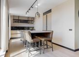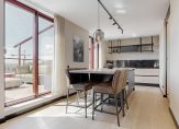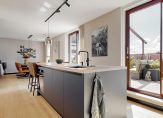 De woonkamer is bijzonder ruim en licht, mede dankzij de grote raampartijen en directe toegang geeft aan de dakterras en balkon. In open verbinding met de woonkamer bevindt zich de moderne keuken met spoeleiland. De luxe keuken is voorzien van diverse inbouwapparatuur, te weten: vaatwasser, heteluchtoven/ combimagnetron, koelkast, vriezer, Quooker, een Wave afzuigkap en inductiekookplaat. Deze centrale leefruimte is perfect voor gezellige diners of ontspannen avonden thuis.