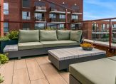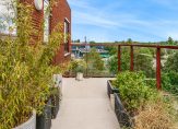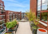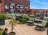 Het appartement beschikt over een dakterras en balkon. Naast het ruime (zij) balkon is er dus een opvallend groot terras van circa 32 vierkante meter. Dit terras is bereikbaar via de keuken en een van de slaapkamers. Deze buitenruimte biedt volop mogelijkheden om te ontspannen in de zon, te tuinieren in potten of om een gezellige loungehoek in te richten.