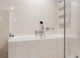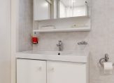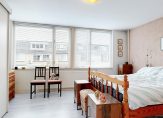 1e verdieping: overloop met inbouwkast, 2-tal ruim bemeten slaapkamers. De grote slaapkamer aan de achterkantzijde kan tevens opgesplitst worden in twee slaapkamers. Complete badkamer met wastafel in ombouw, ligbad, douchecabine en 2e toilet.