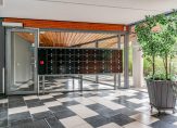 Afgesloten entree met intercom- en videofooninstallatie, bellentableau, brievenbussen, trappenhuis, liftinstallatie en toegang tot de berging in de onderbouw.