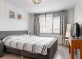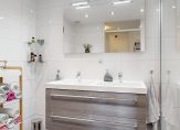 Entree / hal met praktische bergkast, meterkast en modern en separaat toilet met fonteintje. De ruime en moderne badkamer is geheel betegeld en uitgerust met een goede inloopdouche en dubbele wastafel. Het appartement heeft de beschikking over een 2-tal ruime slaapkamers.
