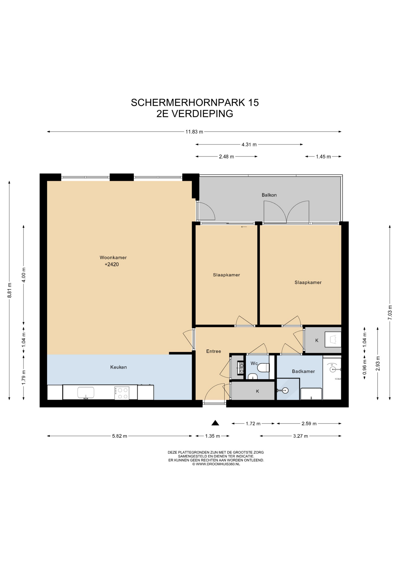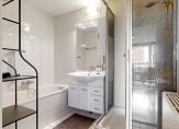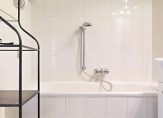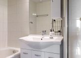 Entree / hal met praktische bergkast, aparte wasruimte, meterkast en keurig toilet met fonteintje. De ruime en nette badkamer is uitgerust met een goede douchecabine, ligbad en vaste wastafel. Het appartement heeft de beschikking over een 2-tal ruime slaapkamers.