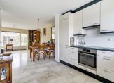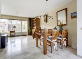 De woonkamer is tuingericht en door de ramen in de zijgevel een fijne lichte ruimte. Via de loopdeur bereik je de zonnige achtertuin.