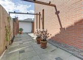 Je loopt de tuin in via de loopdeur in de woonkamer, maar dit kan ook via de zijtuin naast de voordeur. De tuin ligt op het westen en is het hele jaar dus zonnig!