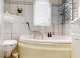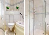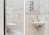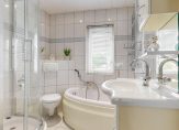 Middels vaste trap bereikt men de 1ste verdieping. Overloop met praktische bergkast. De verdieping geniet van een 3-tal royale slaapkamers, waarvan 1 met vaste kast. Neutrale en complete badkamer met ligbad, douchecabine, 2de vrijhangend toilet, vaste wastafel en raam..
