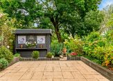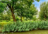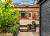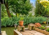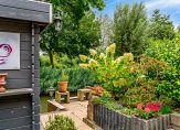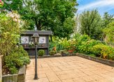 Mooi en speels aangelegde achtertuin met zonnige ligging op het zuiden. Naast de goede zonligging kan men hier heerlijk in alle rust genieten van de optimale privacy. De achtertuin is gelegen aan het water en kijkt uit over een park. In de achtertuin is een houten berging aanwezig