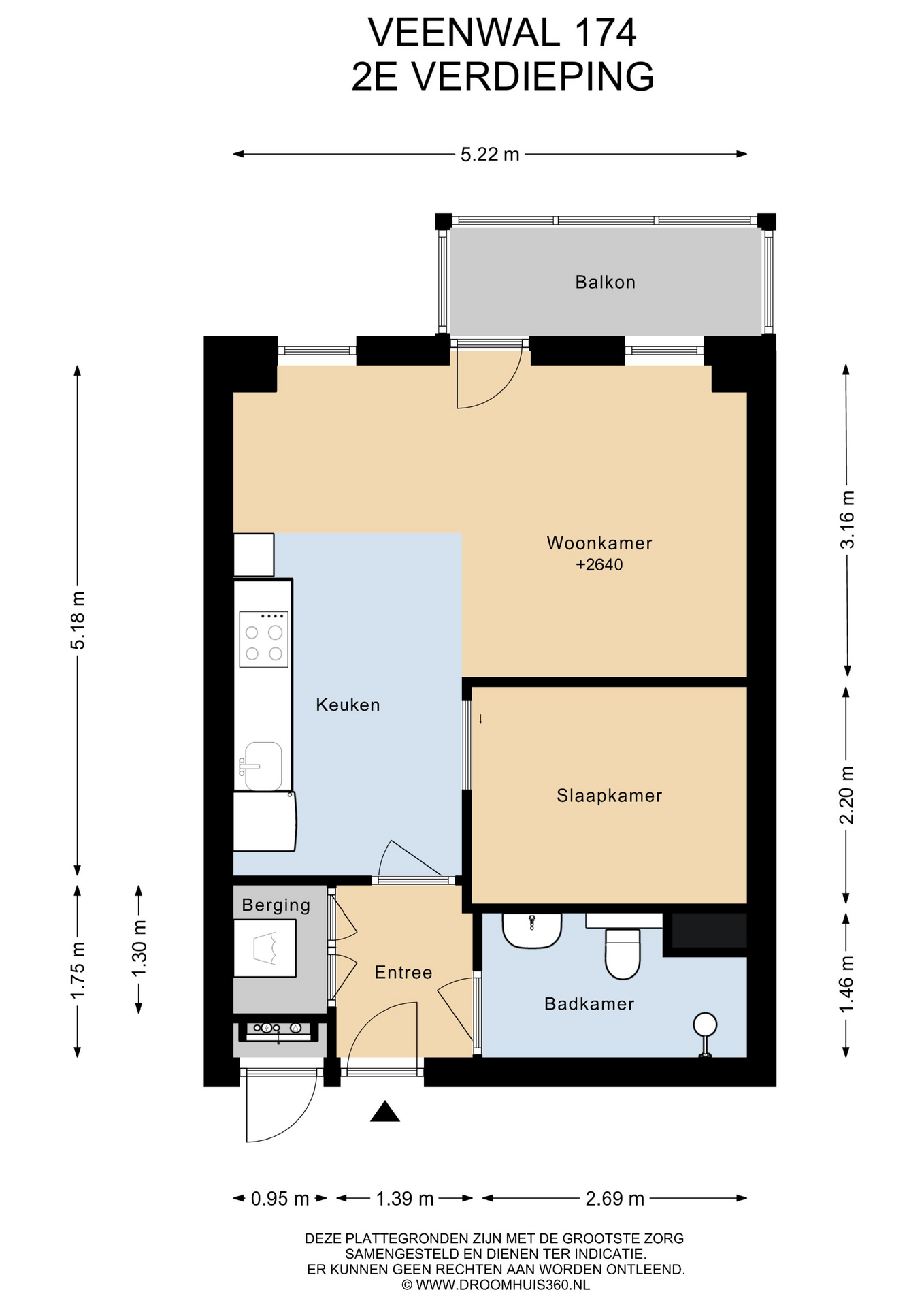 Indeling woning: Hal met toegang tot de bergkast met w.m.-aansluiting, keurig betegelde badkamer met wastafel, douche en toilet. Verder naar de achtergelegen woonkamer met deur naar het balkon en open keuken voorzien van nette keukeninrichting met kookplaat en afzuigkap. Een wand met schuifdeur scheidt de woonkamer van het slaapgedeelte. Vloerafwerking met laminaat.