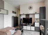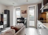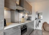 Indeling: Hal met garderobe, ruime bergkast met w.m.-aansluiting. Toegang tot de badkamer met douche, wastafelmeubel en toilet en slaapkamer. De woonkamer en keuken vormen een geheel. De moderne keukeninrichting uitgevoerd met inductie kookplaat, combi oven (oven/magnetron), afzuigkap, vaatwasser, koelkast en vriezer. En vormt een harmonieus geheel voor zit-, kook—en eetgelegenheden. Geheel met PVC vloerafwerking.