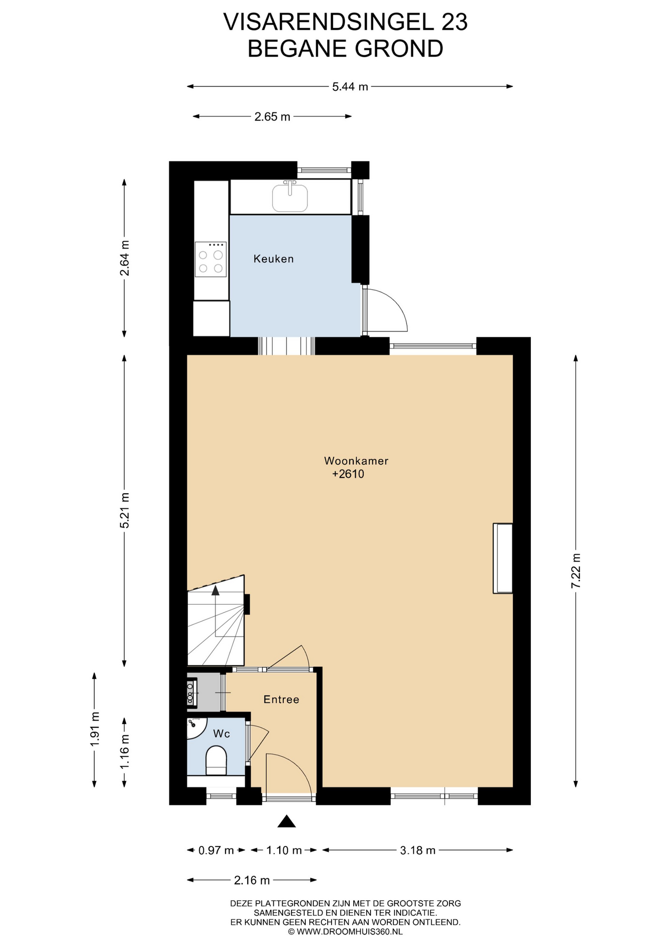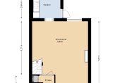De begane grond bestaat uit een ruime woonkamer met veel natuurlijk licht en een complete en zeer nette inbouwkeuken. De afwerking is in goede staat en er is genoeg ruimte voor een eethoek en zithoek.