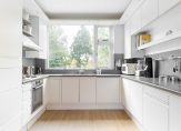 De royale, heerlijk lichte en brede woonkamer met openhaard is gelegen aan de achterzijde en heeft een schuifpui naar de bloemrijke en ruime achtertuin met een terras. De halfopen (eet)keuken bevindt zich aan de voorzijde. De keuken bestaat uit een U-opstelling met diverse inbouwapparatuur, een apothekerskast en een inpandige provisiekast. Het ruime oppervlak op de begane grond met een speels niveauverschil biedt diverse indelingsopties.