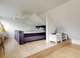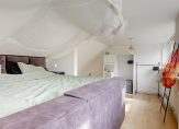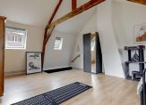 De bovenverdieping is net zo indrukwekkend, met twee royale slaapkamers. Beide slaapkamers hebben hun eigen trapkopgang, nog z’n karakteristieke eigenschap van de woning.