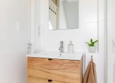 Verdieping 1: overloop met velux dakraam en wasruimte, 2-tal goed bemeten slaapkamers waarvan 1 slaapkamer met kastenwand. Verder een keurige badkamer met wastafel in ombouw, ligbad, douchecabine en 2e toilet.